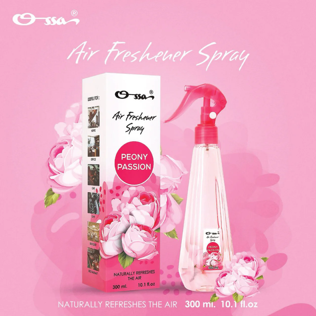 Ossa Peony Passion Air Freshener Liquid Spray 300ml Long Lasting Fragrance Long Lasting Home Fragrance Prefect For Home, Office, Salons
